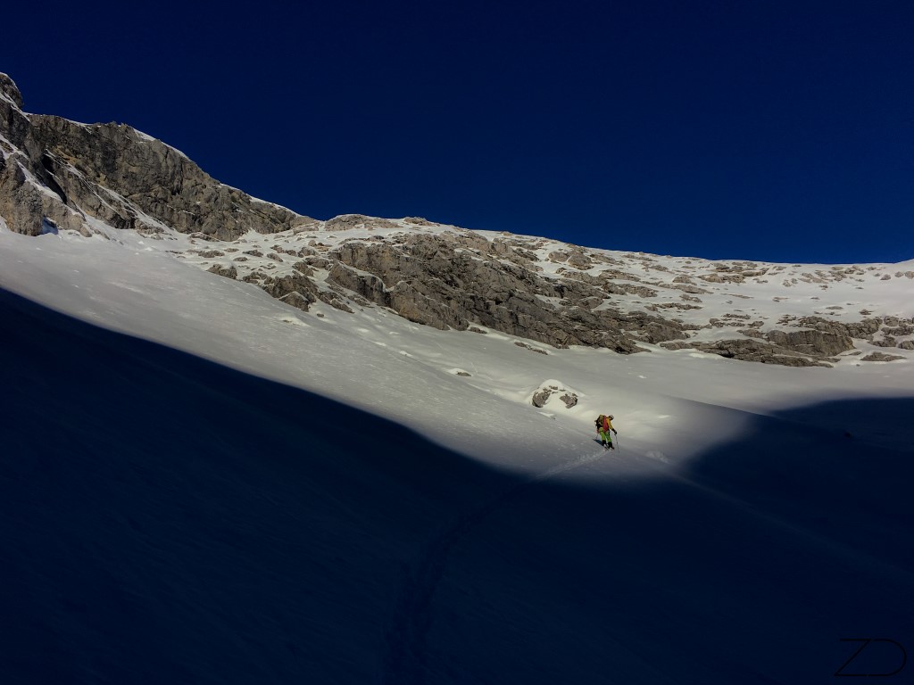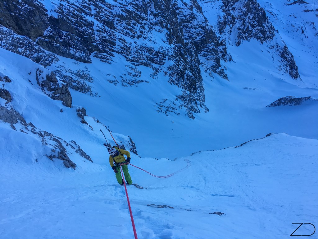 Den haben wir auch gefunden, auf dem Hochgletscher. nach 130m Abseilen, trafen wir auf den unberührten Hochgletscher und genossen die rasante Fahrt. 650 Höhenmeter in einer Hammer Felskulisse