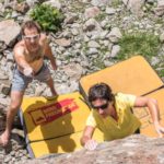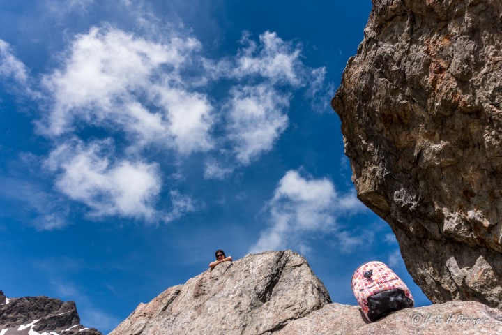 Heli-06177 (Small)Start auf die Darmstädter Hütte, Helma, Zimmsi, Matthias und Heli – Kurzen Mittagspause mit Knödelverköstigung von Marika 😉 und dann ins Bouldergebiet hinter der Hütte bei einem einsamen See – Weiter zum Klettergarten Schneekönigin und zurück zur Hütte 🙂
