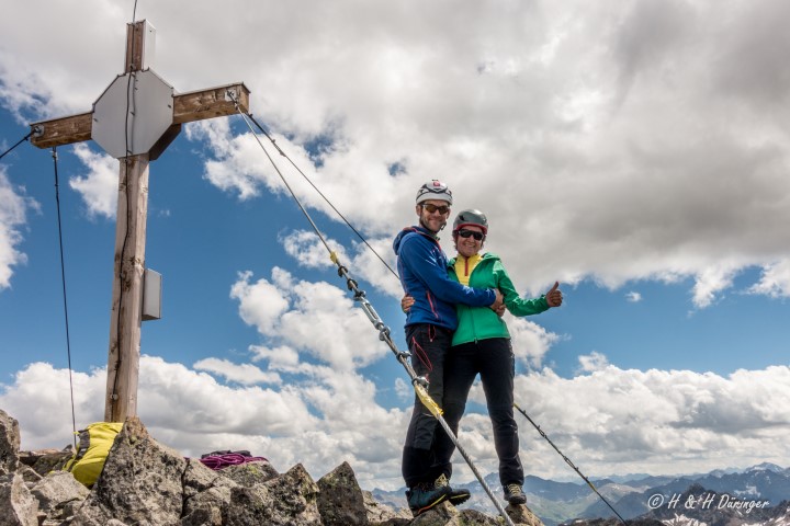 Zweiter Tag, ab zur Südwand der Östlichen Faselfadspitze, Tour „Totale Absolution“ 6+ und über den Ostgrat auf die Östliche Faselfadspitze 2947m – Weiter auf dem Verbindungsgrat zur Westlichen Faselfadspitze 2993m – Abstieg über den Südgrat und zur Hütte – Dann wieder gemeinsam nach Hause 🚌🍝