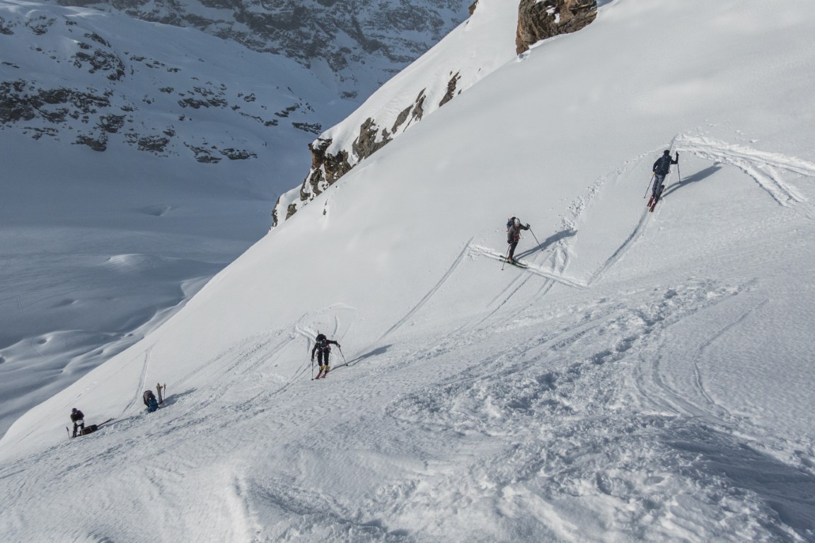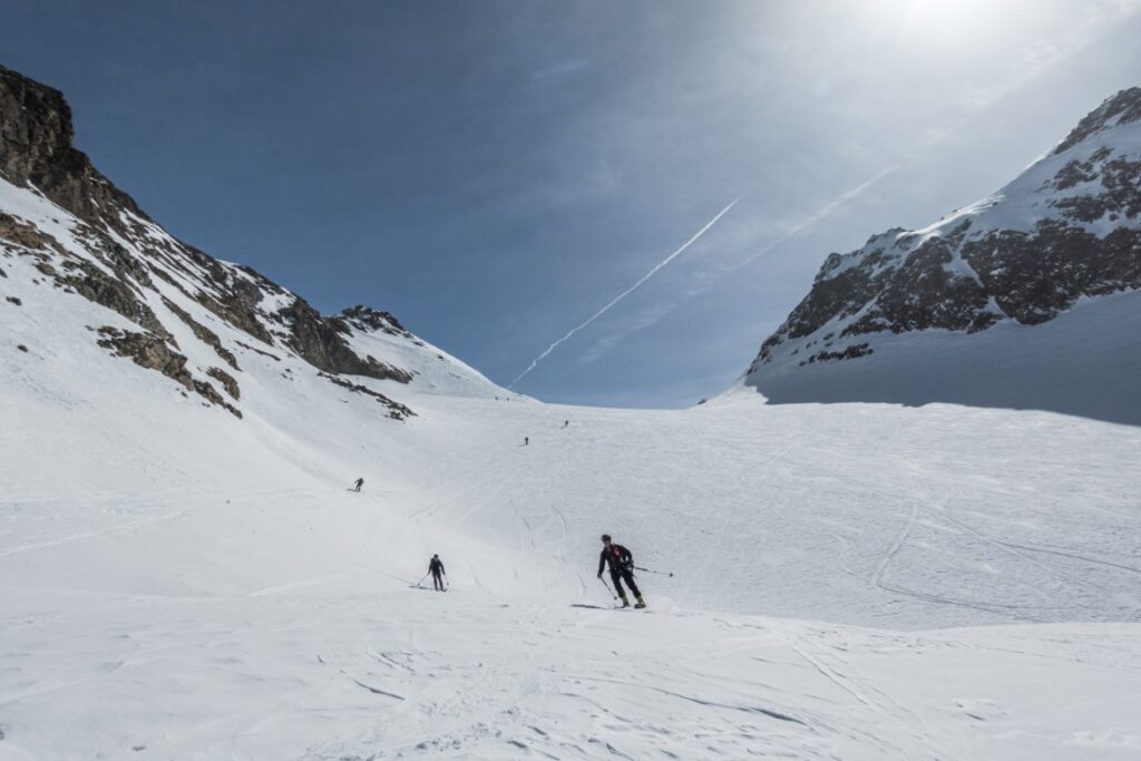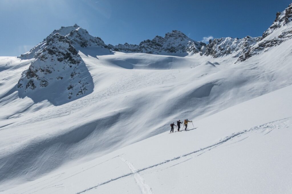 Am zweiten Tag ging es über den Ochsenkopf weiter zur Wiesbadener Hütte. Weite Gletscherflächen und perfekte Schneeverhältnisse machten diesen Tourentag besonders genussvoll.
