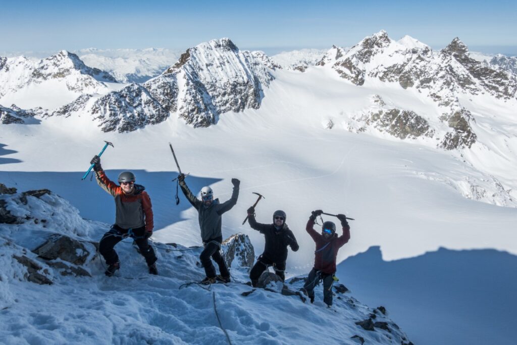 Ein Höhepunkt der Durchquerung war die Besteigung des Piz Buin, dem höchsten Gipfel Vorarlbergs. Nach dem Gipfelerlebnis führte unsere Route weiter zur Tuoi-Hütte auf Schweizer Seite.